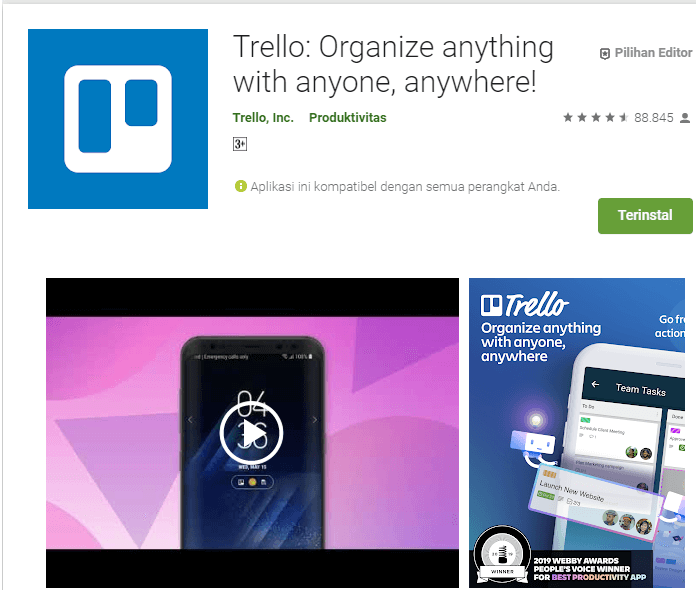 Aplikasi ini berguna untuk kamu yang bergelut pada banyak proyek dan kolaborasi. Trello bermanfaat untuk me-monitor hingga mengatur deadline tugas. Aplikasi ini memiliki 3 fitur utama, yaitu Board, List, dan Card. Board merupakan papan yang didesain untuk menamai tema proyek/kerja yang kamu rencanakan. Fitur List merupakan tempat untuk menyusun langkah/tahapan-tahapan kerja yang perlu diselesaikan oleh tim kamu. Fitur Card merupakan tempat untuk menuangkan ide-ide/gagasan untuk menyukseskan proyek kita. Pada Trello, kita pun dapat mengundang teman-teman yang akan kita ajak kolaborasi. Tiap tema proyek/pekerjaan kita bisa memiliki rekan kolaborasi yang berbeda-beda.