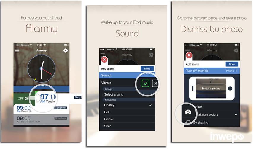Alarmy merupakan salah satu aplikasi alarm unik yang menggabungkan fungsi alarm dengan kamera. Inwepo merekomendasikan aplikasi ini karena memang harus ada effort untuk mematikan alarm ini. Kamu harus memotret benda tertentu yang sudah kamu setting sebelumnya agar nada alarm mati. Cukup merepotkan tapi seru bukan?