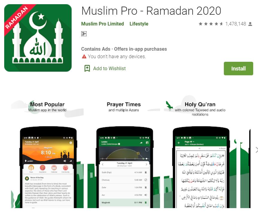Aplikasi muslim pro sangat direkomendasikan untuk kamu dalam melakukan kegiatan selama melakukan kegiatan beribadah di bulan ramadhan, di aplikasi ini memiliki berbagai fitur yang cukup banyak, mulai dari al-quran, jadwal adzan, jadwal sholat dan lain sebagainya.