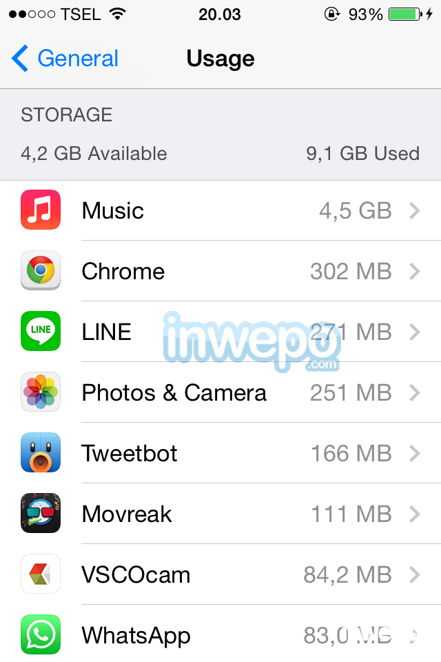 Kalian akan terkejut melihat apps mana saja yang memakan banyak space iPhone kalian. Untuk melihatnya, klik Settings > General > scroll ke bawah lalu tap Usage. Biarkan iPhone memprosesnya sebentar lalu kalian dapat memonitor apps mana yang paling boros. Lalu hapus yang menurut kalian tidak penting, game yang sudah mulai membosankan, apps yang sudah tidak terlalu sering kalian gunakan namun memakan banyak memory; Hapus!