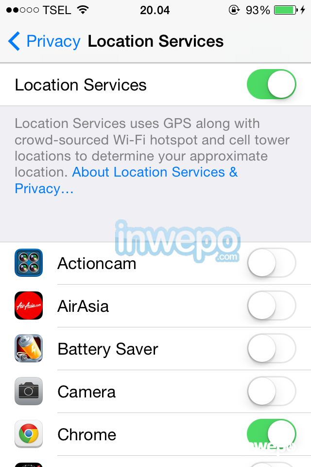 Ini sangat penting untuk kecepatan, baterai, dan privasi. Banyak apps membutuhkan fitur ini untuk menunjukkan di mana posisi kalian berada, namun tidak semuanya penting. Tap Settings > Privacy > Location Service, dari situ kalian bisa mematikan fitur ini secara keseluruhan, atau membatasi beberapa apps saja. Apps seperti Maps, jelas butuh fitur ini untuk mengetahui keberadaan kalian. Namun Twitter dan Facebook tidak perlu tahu kalian sedang berada di mana.
