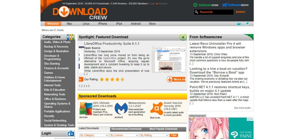 DownloadCrew juga merupakan situs download software terbaik walaupun tampilannya sedikit rumit. Meskipun begitu, saat kamu mendownload dari situs ini kamu tidak perlu khawatir ada bloatware di software yang kamu download. Dan di situs ini kamu juga bisa menemukan software untuk berbagai platform yang tersedia seperti Mac, linux, iPhone, dan android.