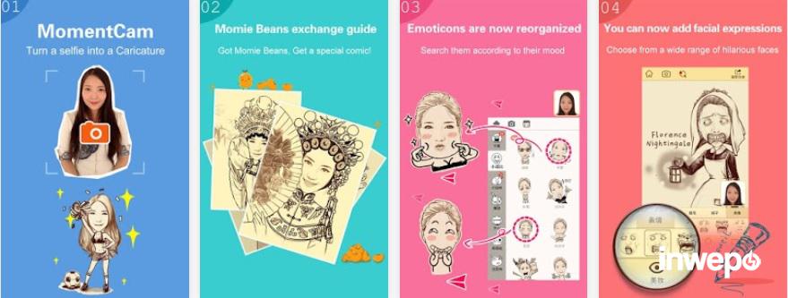 MomentCam adalah aplikasi edit foto yang berfungsi untuk mengubah foto menjadi gambar kartun karikatur.