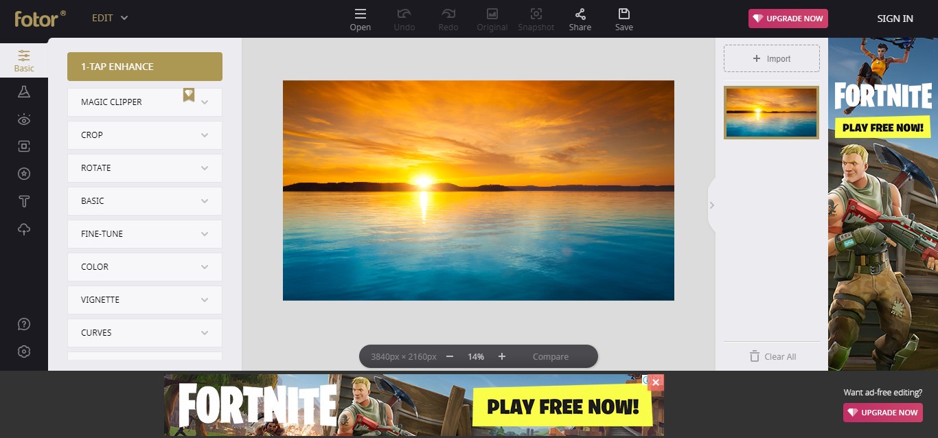 Fotor tidak seperti editor foto lainnya pada daftar ini, karena Fotor merupakan aplikasi editor foto online yang berjalan pada web browser, kamu tidak perlu mendownload dan menginstalnya, cukup kunjungi situs Fotor dan import foto kamu untuk mengeditnya.