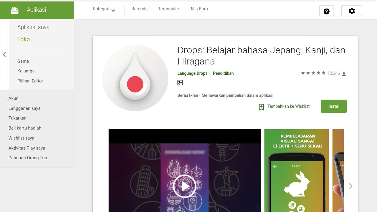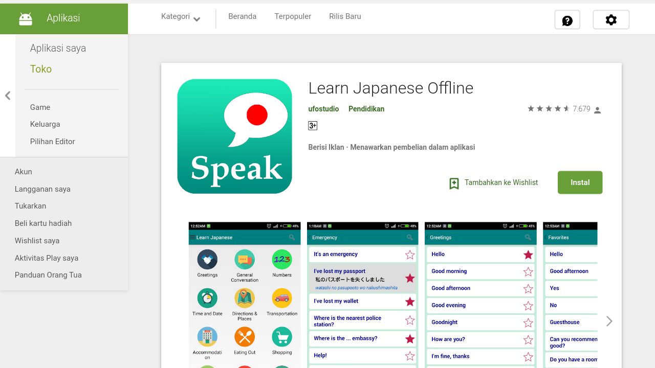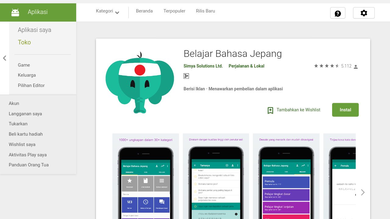 Download Belajar bahasa Jepang di Play Store.