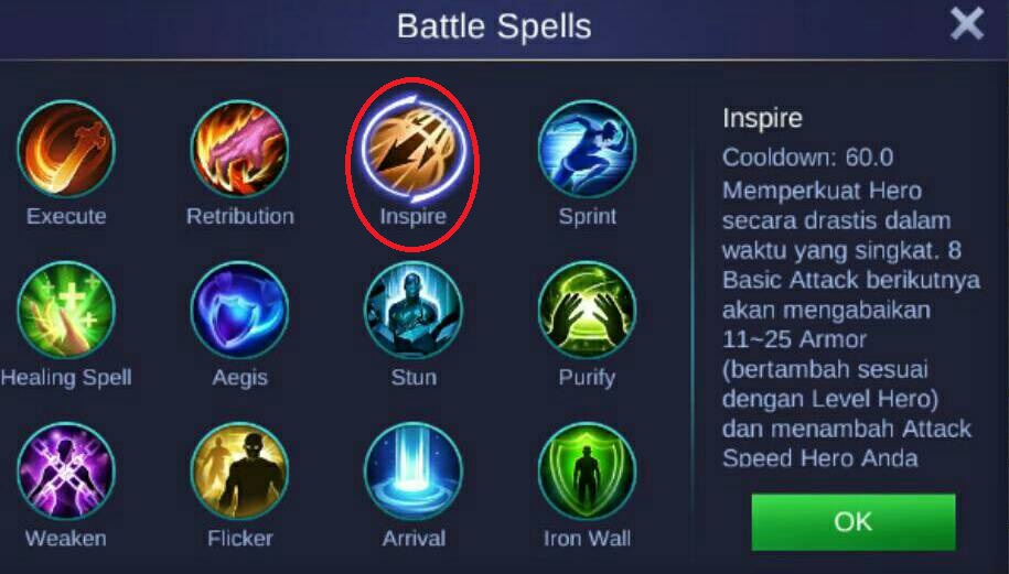 Kemudian untuk battle spell di rekomendasikan untuk menggunakan fury atau inspire, karena akan menambahkan attack speed bruno menjadi semakin cepat dan menjadi sangat sakit karena serangan bola bola yang mematikan.