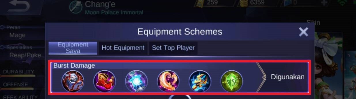Berikut ini adalah item terbaik yang banyak di gunakan oleh top global Chang’e :