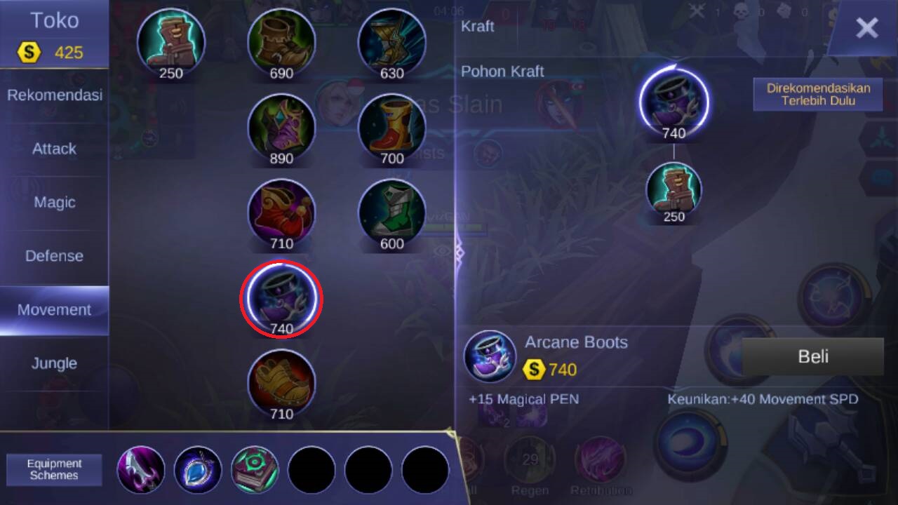 Item ke tiga adalah Arcana Boots karena item akan meningkatkan movement speed cyclops menjadi +40% dan juga aka menambahkan +15% Megical Penetration, atau bisa di katakan dapat mengurangi armor musuh yang sedang di serang.