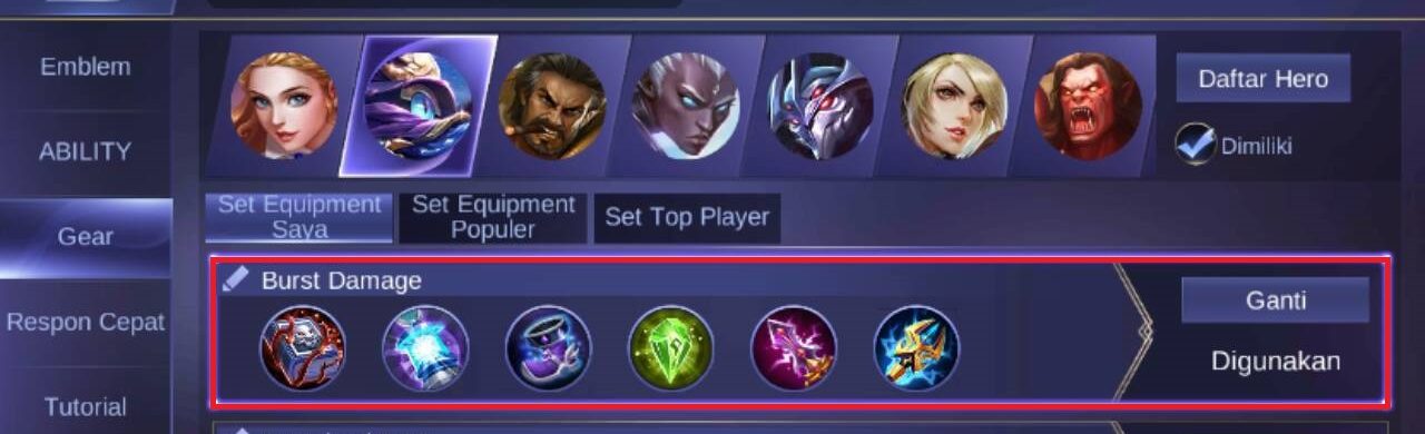 Berikut ini adalah Item terbaik yang banyak di gunakan oleh top global Cyclops