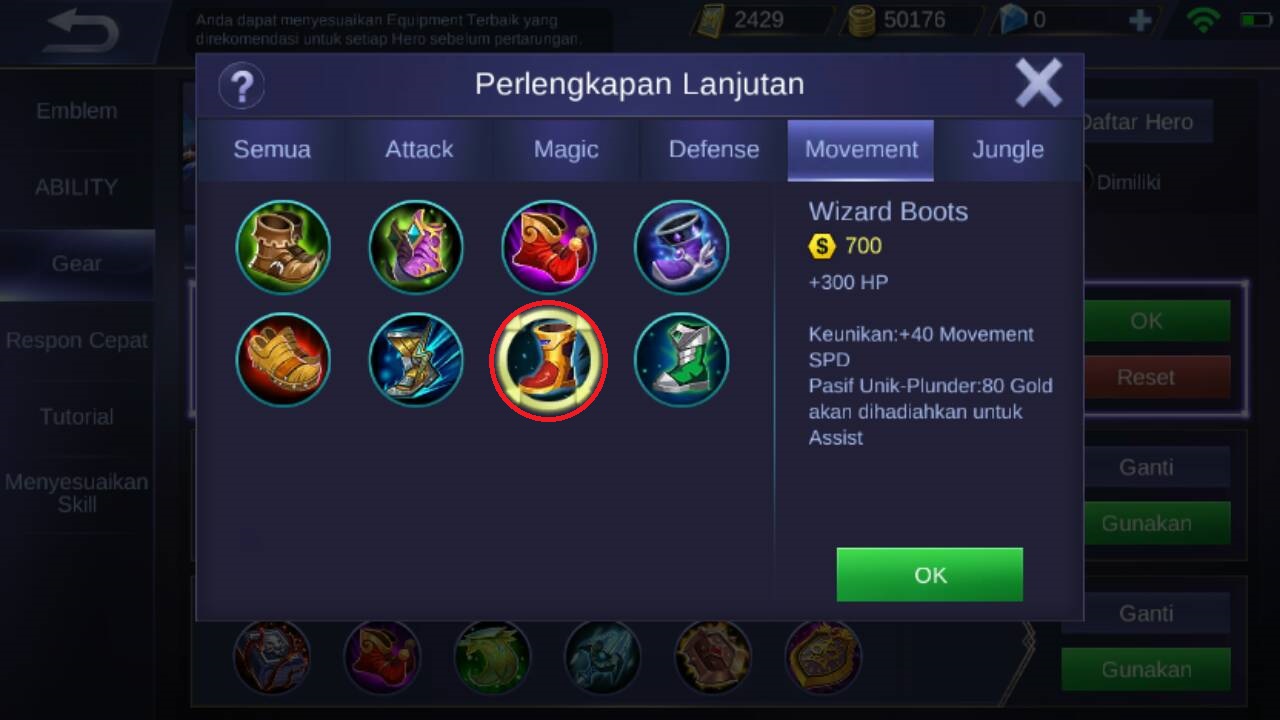 item pertama yang di rekomendasikan untuk di beli adalah Wizard Boots karena item ini menambahkan +300 HP, keunikan +40 Movement Speed dan pasif Unik dari item ini berupa : ketika membantu teman membunuh musuh maka estes akan mendapatkan 80 gold. Jadi sangat cocok bagi estes yang notaben nya adalah seorang suport.