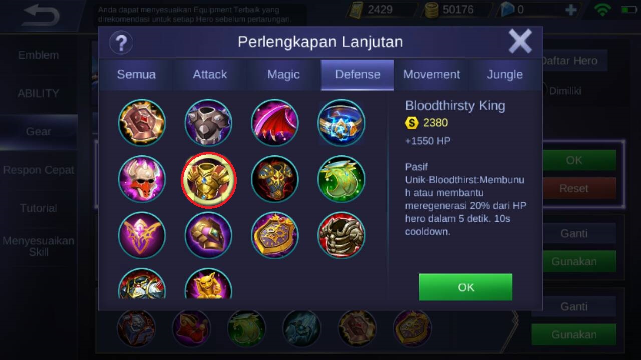 Dan yang terakhir di rekomendasikan adalah Bloodthirsty King, karena item ini akan memberikan +1550 HP dan pasif unik dari item ini ketika membunuh musuh atau memberikan assist maka estes akan mendapatkan 20% HP regen dalam 5 detik. Namun memiliki cooldown selama 10 detik.