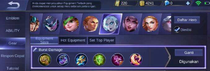 Berikut ini adalah item terbaik yang banyak di gunakan oleh top global Eudora :