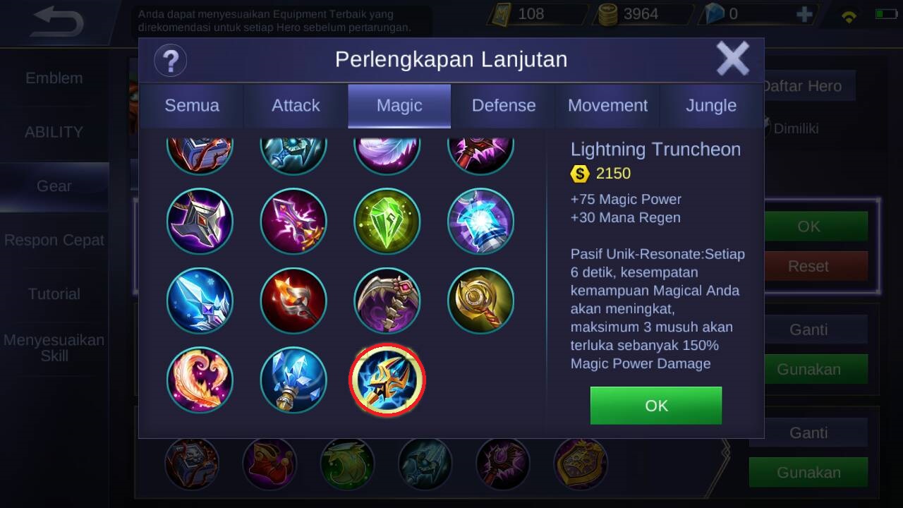 Selanjutnya dapat membeli lightning truncheon karena akan menambahkan +75 magic power, dan juga +30 mana regen, dan kemampuan unik dari item ini adalah setiap 6 detik ketika menyerang musuh, musuh bakal terkena efek seperti di sambar petir yang akan memberikan 150% magic power damage (max 3 musuh). Item ini sangat cocok bagi Eudora karena efek nya yang sangat menunjang bagi skill skill nya.
