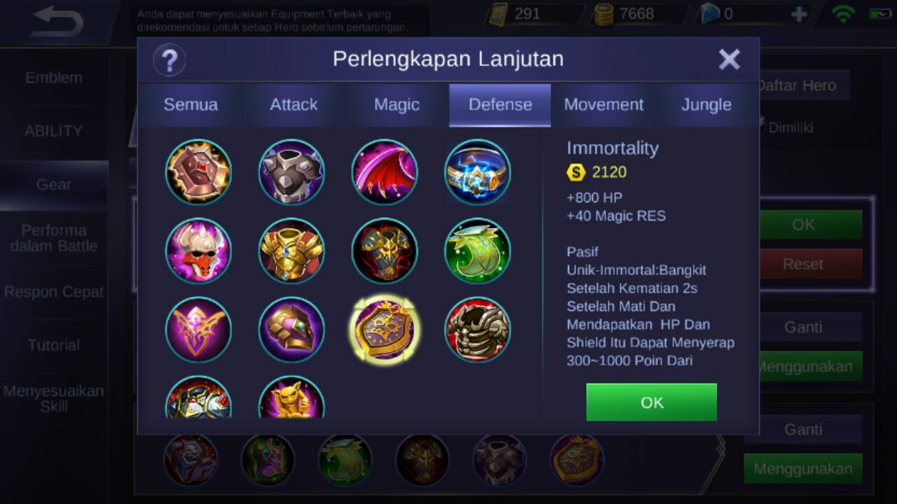 Dan yang keempat ambil item Immortality yang berguna untuk memberikan 800 HP dan 40 Magic RES, pasif unik dari item ini adalah : bangkit dari kematian setelah 2 detik dan akan mendapatkan HP juga shield yang dapat menyerap 300 – 1000 poin dari serangan, shield akan bertahan selama 3 detik. Cooldown efek ini 180 detik.