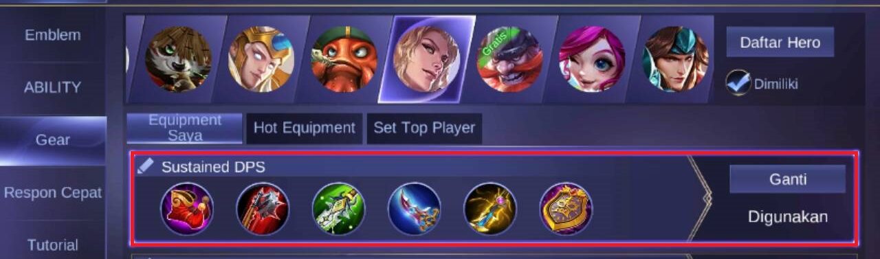 Dan berikut ini adalah rekomendasi item terbaik Lancelot yang paling banyak di gunakan oleh para top global Lancelot: