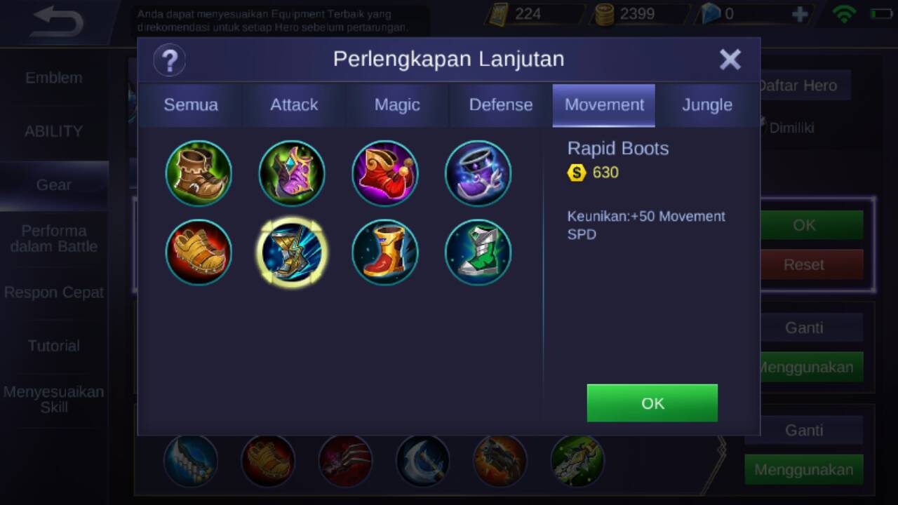 Item selanjutnya adalah rapid boots, karena item ini akan menambahkan mevement speed Natalia sebesar +50. Sepatu ini di rekomendasikan karena Natalia harus memiliki movement speed yang tinggi untuk mempermudahnya roaming dan membuka map.