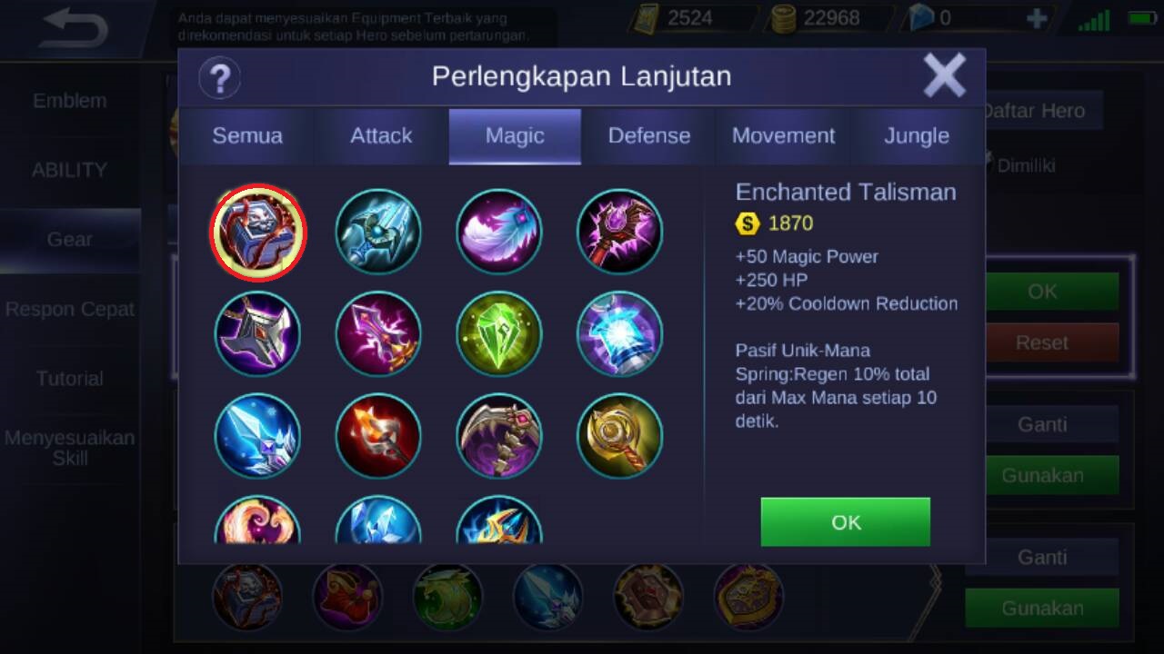 Untuk Rafaela item pertama yang disarankan adalah item Enchanted talisman karena item ini memberikan Pasif Unik-Mana Spring: Regen 10% total dari Maksimal mana setiap 10 detik. Selain itu item ini juga memberikan kekuatan berupa +50 Magic Power, +250 HP, +20% Cooldown Reduction, item ini sangat bagus untuk di beli di awal game karena akan mengurangi sedikit cooldown dari skill skill rafaela.