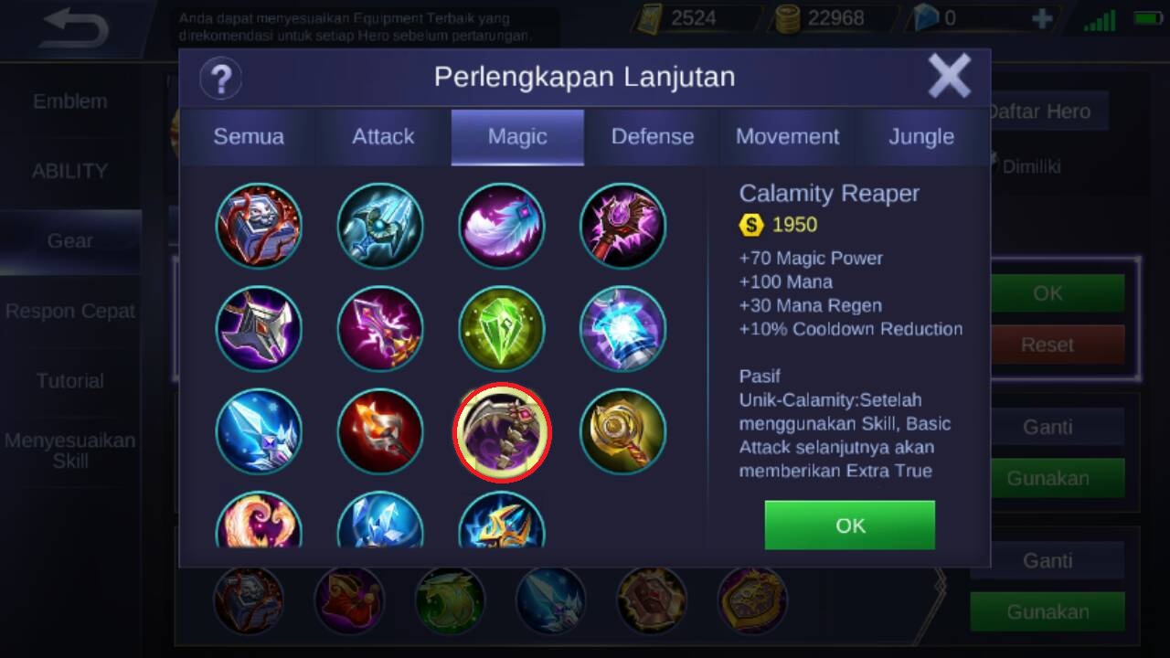 Dan untuk item yang ketiga Rafaela bisa membeli item Calamity Reaper yang fungsinya sendiri adalah Pasif Unik-Calamity: Setelah menggunakan skill, Basic Attack selanjutnya akan memberikan Extra True Damage kepada sekitar setara dengan 10% magic attack namun efek itu memiliki cooldown selama 1.5 detik. Item ini juga memberikan efek +70 Magic Power, +100, +30 Mana Regen dan +10% Cooldown reduction.