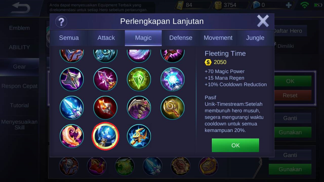 Untuk yang selanjutnya Rafaela bisa memilih item Fleeting time yang berfungsi Pasif Unik-Timestream: setelah membunuh hero musuh, segera mengurangi waktu cooldown untuk semua kemampuan 20%. Item ini juga memberikan +70 Magic Power, +15 Mana Regen dan +10% Cooldown Reduction. Item ini sangat cocok untuk rafaela karena dapat mengurangi cooldown di skill skillnya.