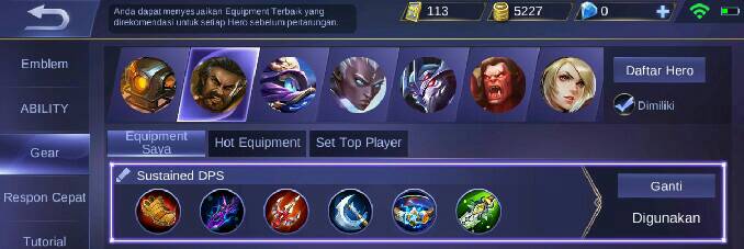 Dan berikut ini adalah rekomendasi item terbaik Roger dan yang paling banyak di gunakan oleh para top global Roger :