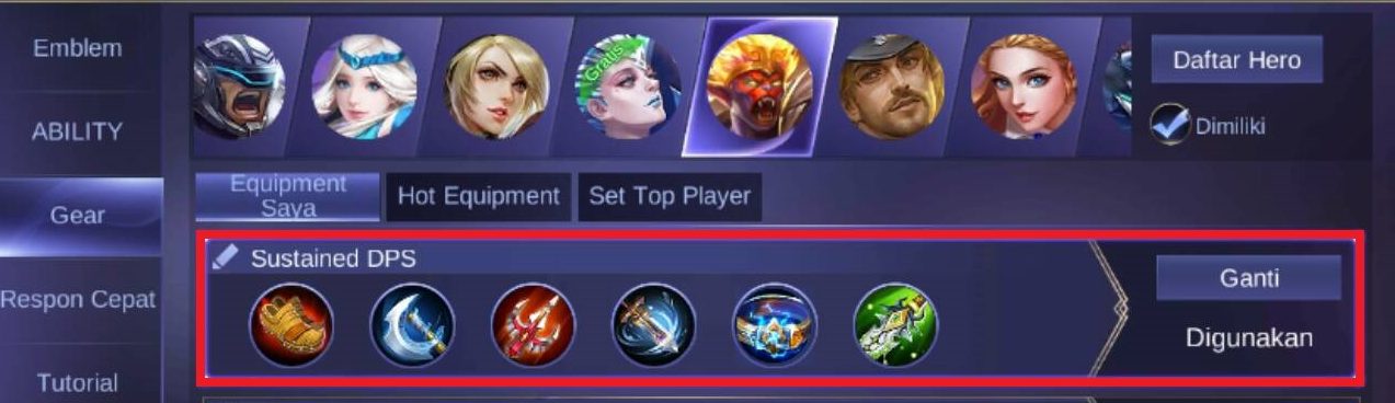 Berikut ini adalah item terbaik yang saat ini di gunakan oleh top global 1 Sun. Yang saat ini di pegang oleh Id berbendera Indonesia dengan 4313 match dan presentase kemenangan sebesar 54.5% :