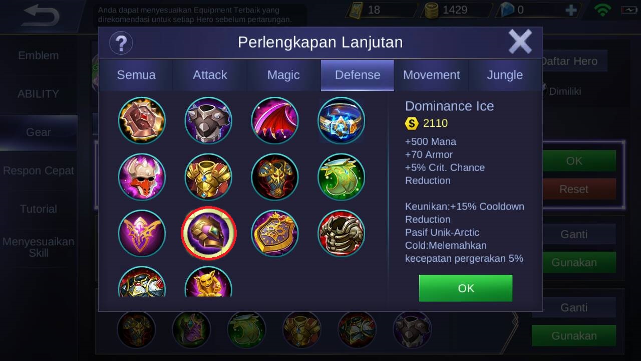 Item keempat adalah dominance ice, karena item ini akan memberikan +500 mana, +70 armor, +5% crit. Chance reduction, +15% cooldown reduction dan pasif unik dari item ini berupa : akan melemahkan kecepatan pergerakan musuh sebanyak 5% dan juga akan melemahkan attack speed musuh sebanyak 30% apabila Tigreal dekat dengan musuh.