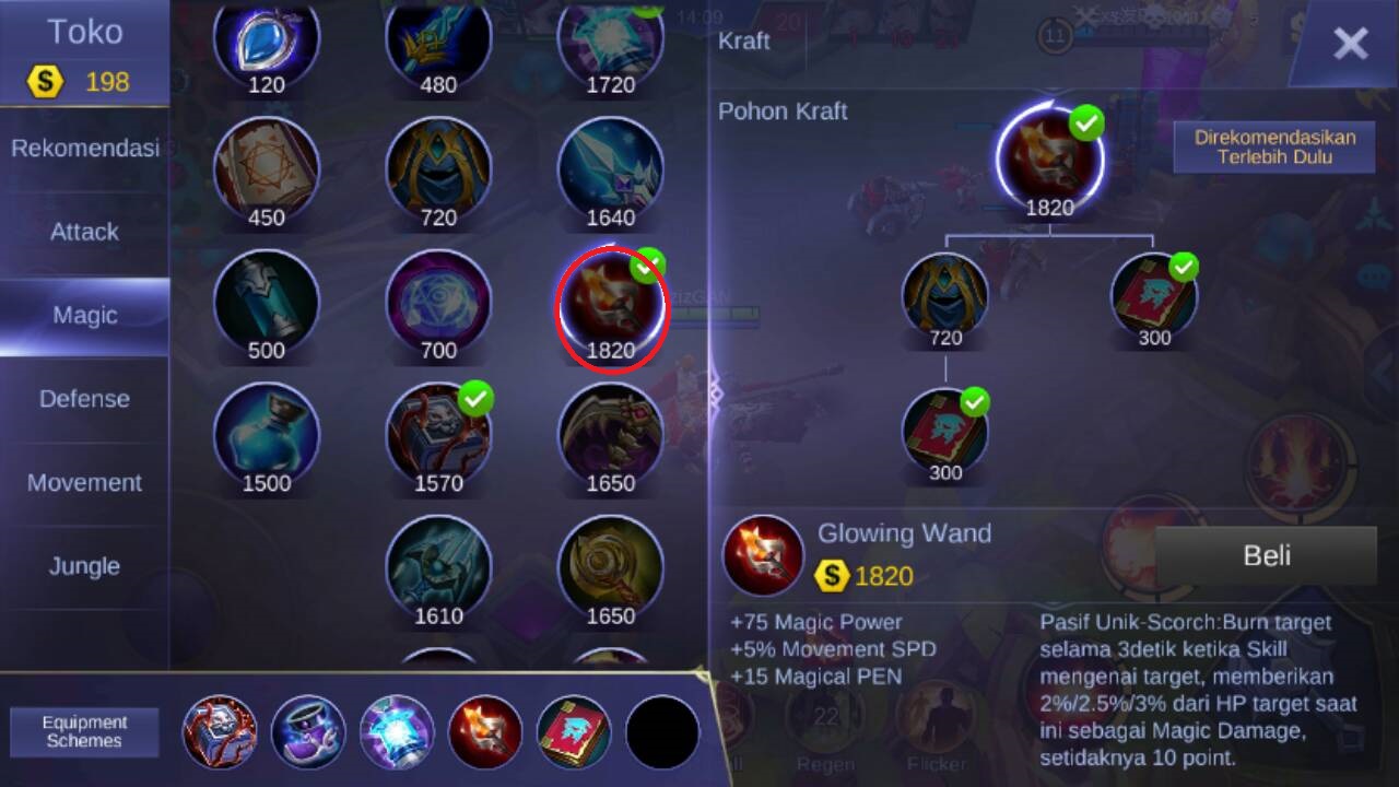 Item ke empat adalah Glowing Wand supaya Valir lebih sakit lagi karena di item ini akan menambahkan +75 Magic Power, +5% Movement Speed, dan +15 Magical Penetration, dan bagus nya dari item ini apabila skill mengenai musuh, maka musuh akan terkena efek terbakar selama 3 detik dan akan memberikan 2%/2.5%/3% dari HP musuh sebagai magic damage, setidaknya 10 poin.