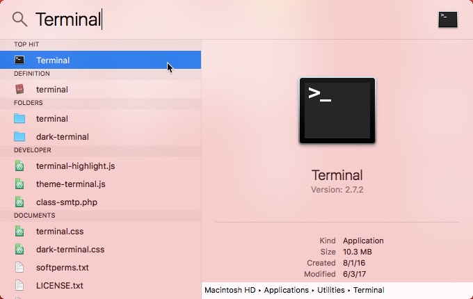 4. Selanjutnya buka software terminal. Terminal dapat ditemukan melalui menu search.