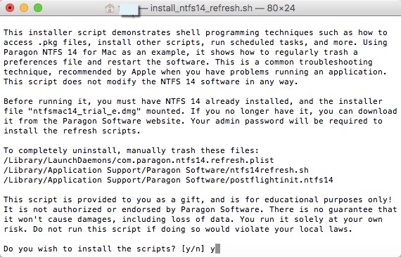 5. Selanjutnya drag/tarik file “install_ntfs14_refresh.sh” ke terminal dan enter lalu ketik huruf y untuk konfrimasi.