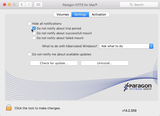 Catatan: Saat menggunakan Paragon NTFS akan terus terlihat notifikasi trial 3 hari abaikan saja, karena kamu dapat menggunakanya lebih dari 3 hari atau seumur hidup. Cara agar notifikasi tersebut hilang silakan buka control panel pada Mac kamu lalu pilih NTFS for Mac OS X