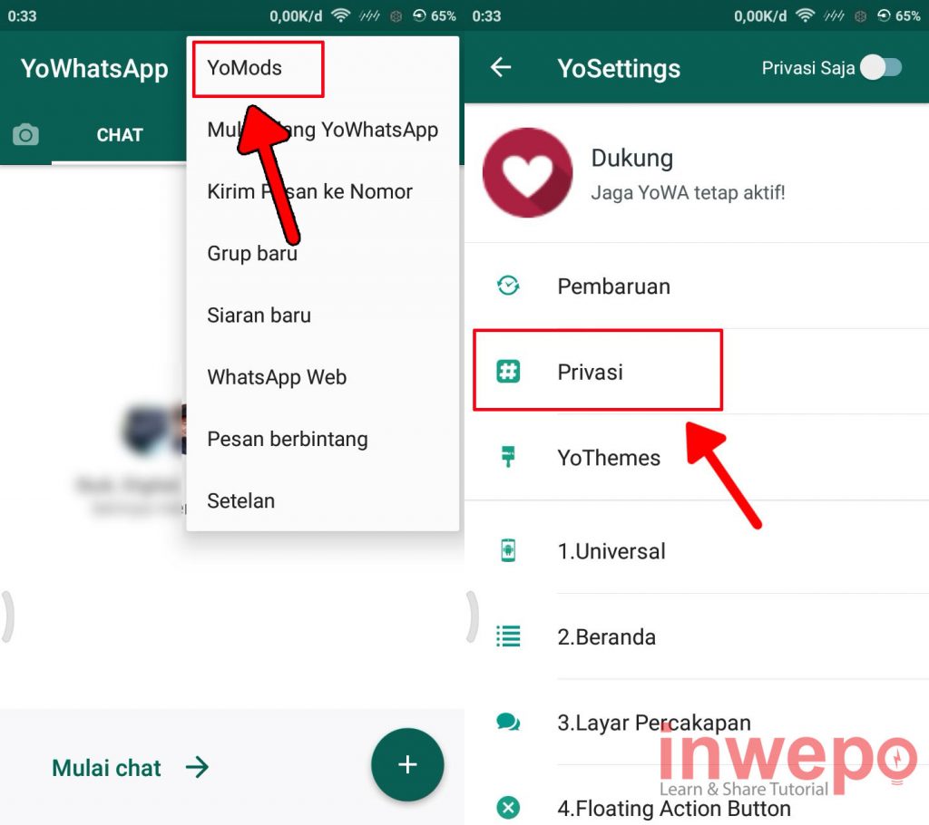 4. Pilih menu YoMods lalu pilih lagi menu Privasi.