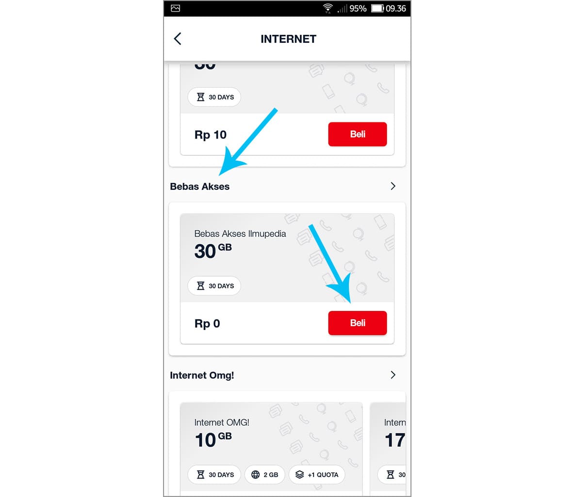 4. Pilih kategori bebas akses, kemudian ketuk beli pada bebas akses Ilmupedia.