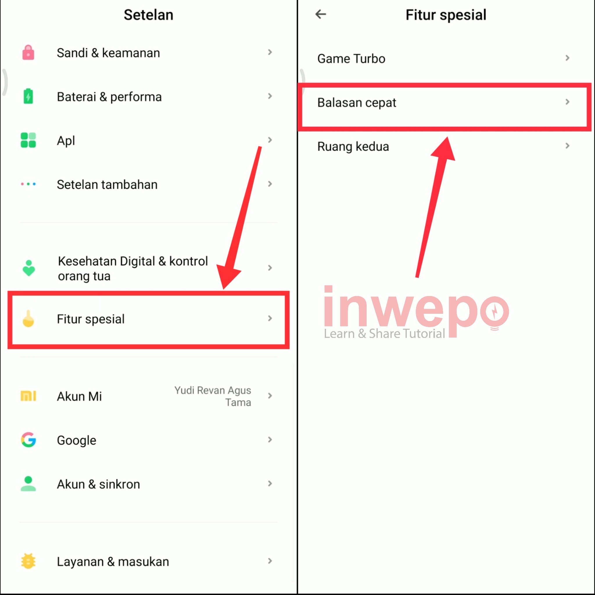 1. Langkah pertama, langsung pergi ke menu Setelan atau pengaturan yang ada di smartphone xiaomi kamu lalu pilih menu Fitur spesial kemudian tap menu Balasan cepat.