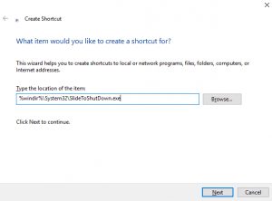 2. Isi location dengan %windir%System32SlideToShutDown.exe