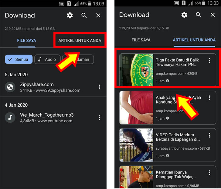 4. Setelah itu, kamu akan menemukan dua opsi yaitu file saya dan artikel untuk anda. Pilih Artikel Untuk Anda.