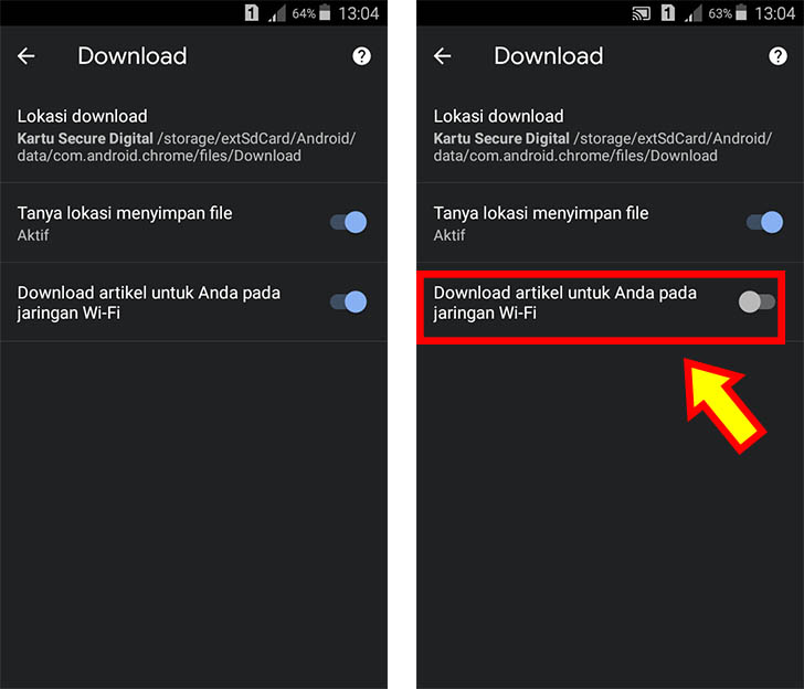 6. Jika kamu ingin menonaktifkan fitur download artikel, kamu bisa menekan simbol Pengaturan dan menonaktifkan opsi “Download artikel untuk Anda pada jaringan Wi-Fi”.