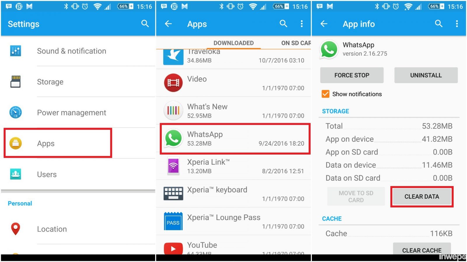1. Hapus aplikasi WhatsApp kemudian install ulang. Jika tidak ingin repot, Anda cukup menghapus data yang terdapat di Menu Settings – Application Manager – WhatsApp – Clear Data. Sehingga nanti nomor WhatsApp Anda akan terhapus.