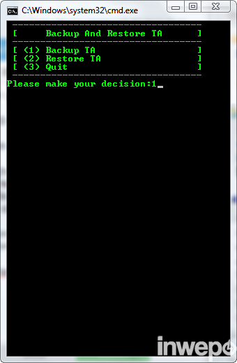 5. Jika anda telah sampai di step ini seharusnya file TA.img telah ada di Drive C:. Untuk restore silahkan ulangi step diatas dan saat di step kelima silahkan ketik ‘2‘.