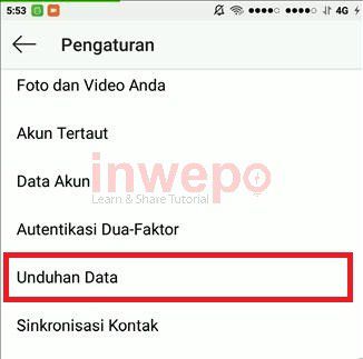 3. Lalu kamu scroll ke bawah sampai kamu menemukan Unduhan Data, lalu tap pada menu tersebut.