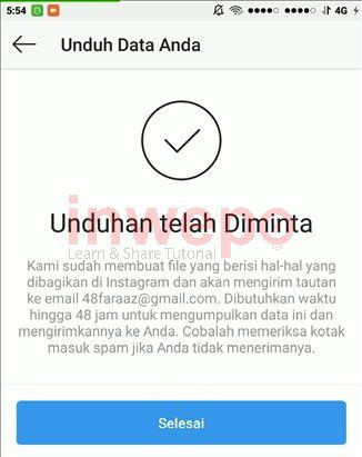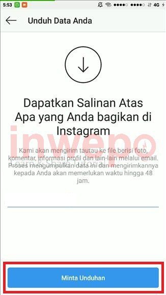 Catatan: Semakin banyak foto, video, komentar dan informasi-informasi pribadi kamu di akun tersebut, maka akan semakin lama pula proses pengambilan data oleh Instagram.