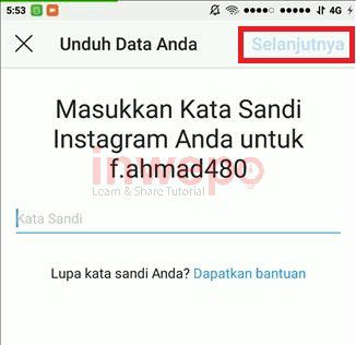 5. Lalu kamu akan diminta memasukkan kata sandi akun Instagram kamu dan jika sudah kamu tap pada tombol Selanjutnya.