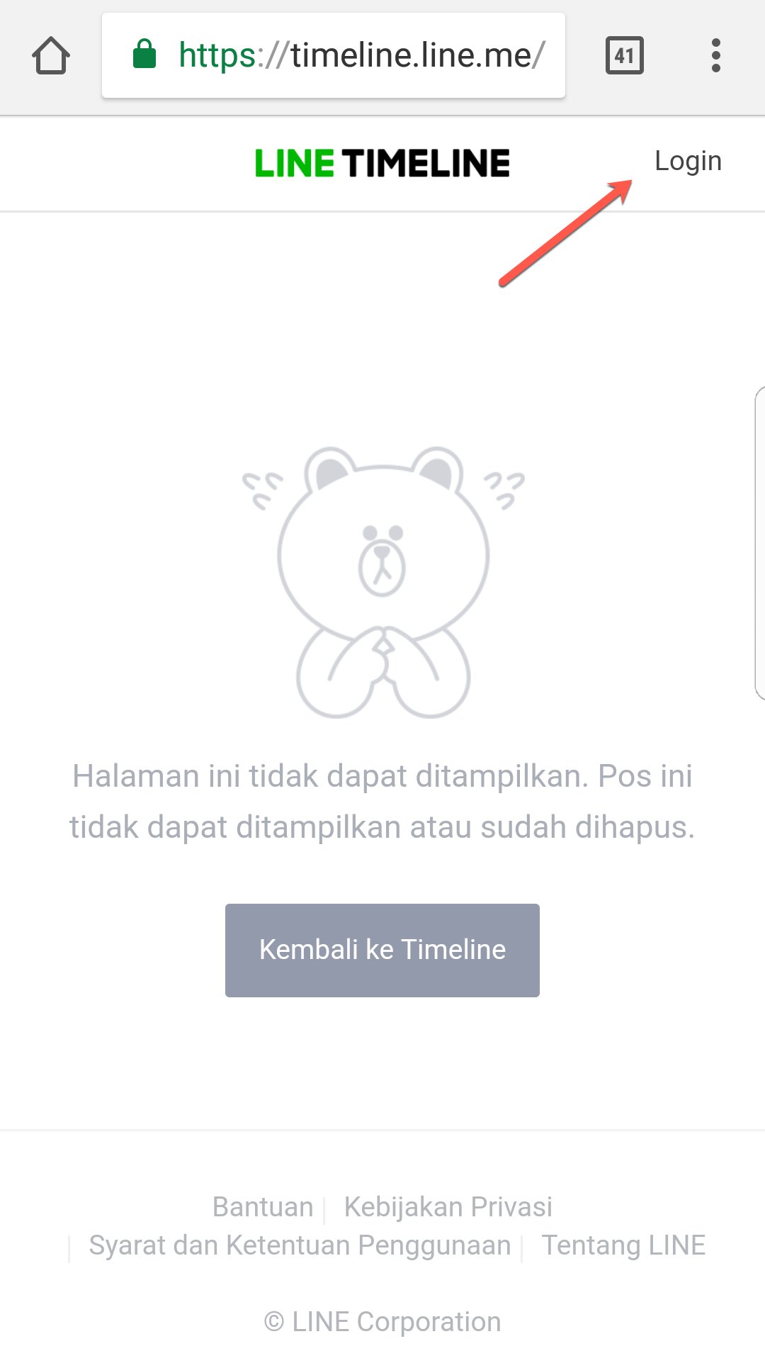 (Jika hanya membuka timeline milik teman maupun OA bot tidak perlu login atau menambahkan akun LINE nya menjadi teman)