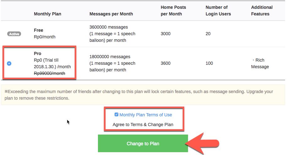 7. Selamat akun LINE@ At official kamu telah menjadi berlangganan paket PRO.
