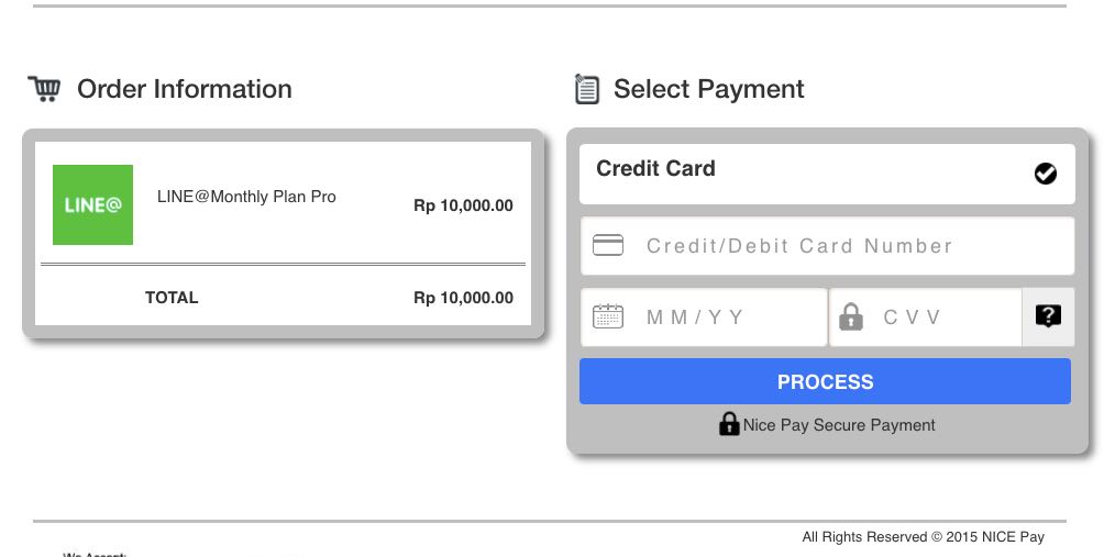 Saat ini LINE@ official telah bekerja sama dengan perusahaan payment gateway dari NicePay.co.id, dengan adanya payment gateway ini memudahkan kita pemilik kartu debit online dapat melakukan pembayaran tanpa kartu kredit.