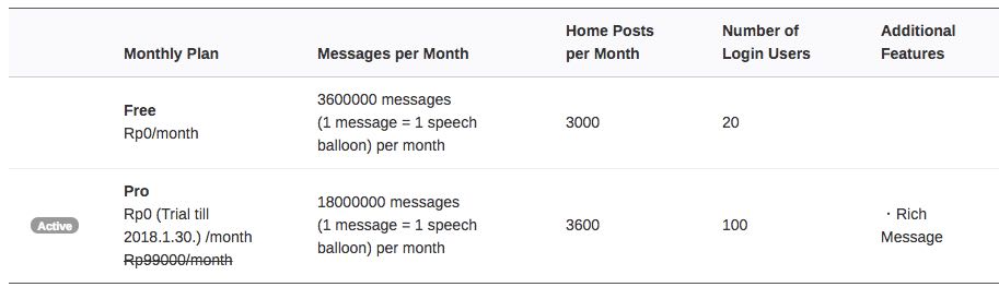 Sebelumnya pada tanggal 1 mei 2017 LINE@ mengumumkan informasi perubahan harga dan layanan melalui akun LINE Business Center dalam promosinya kita akan diberikan LINE@ paket PRO gratis bulanan hingga tanggal 1 Januari 2018 dengan ketentuan hanya membayar Rp10.000 dan uang tersebut akan dikembalikan kembali ke akun bank kita lagi.