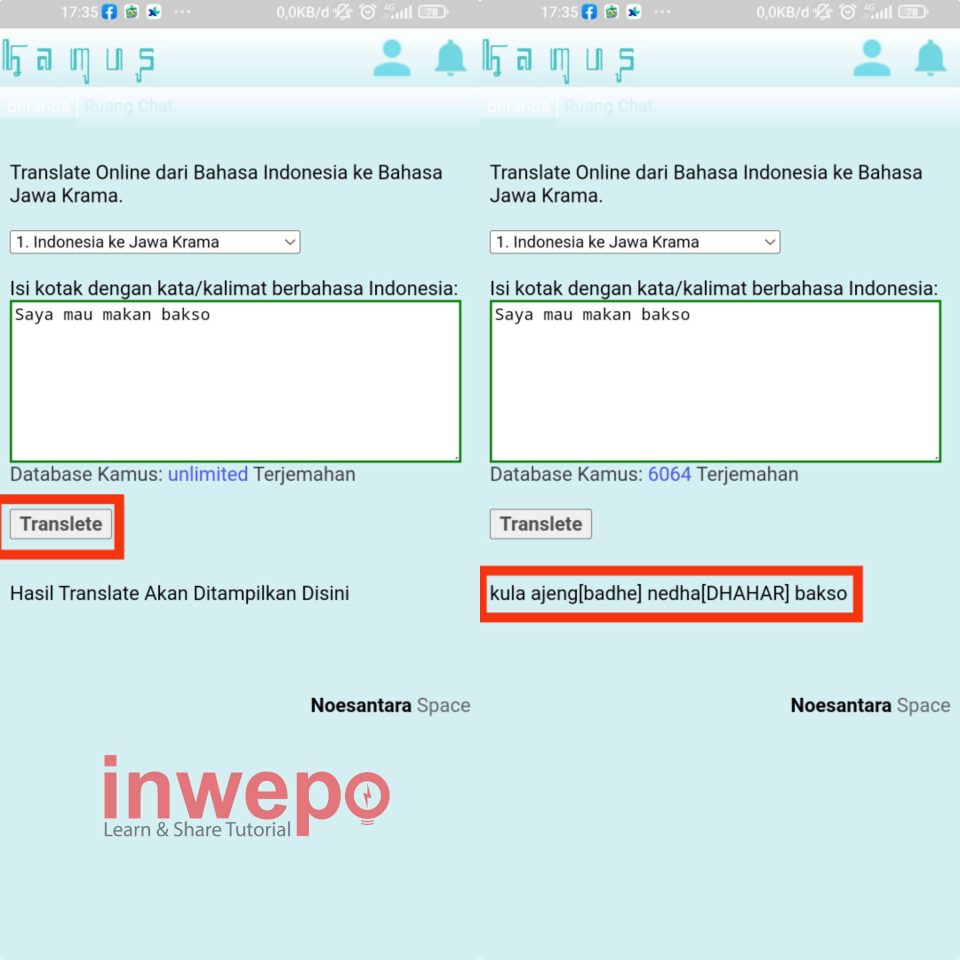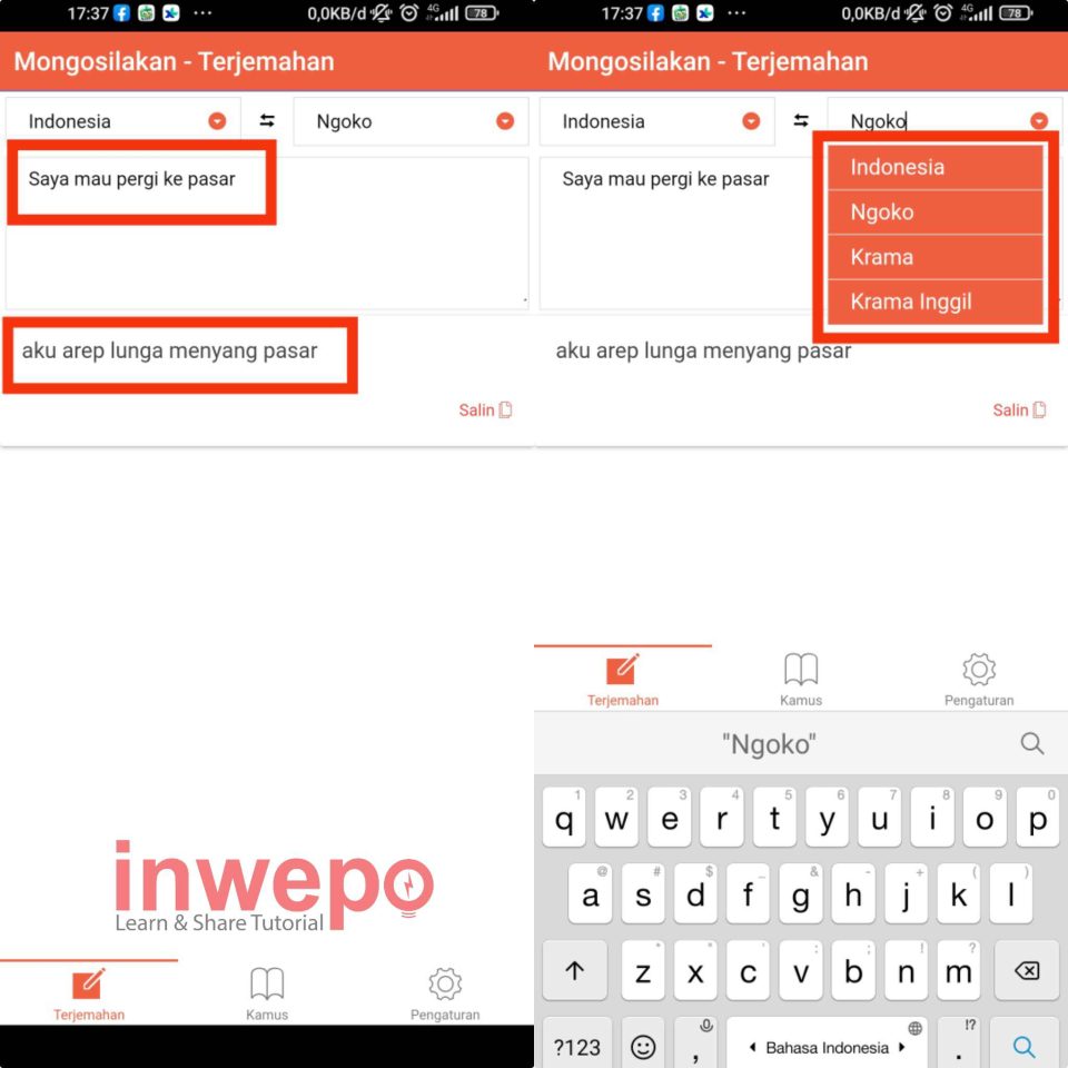 1. Kalian bisa menggunakan aplikasi Translator Jawa layaknya Google Translate atau kamus bahasa Jawa diatas. Bedanya terdapat pilihan bahasa Jawa ngoko di aplikasi Translator Jawa.