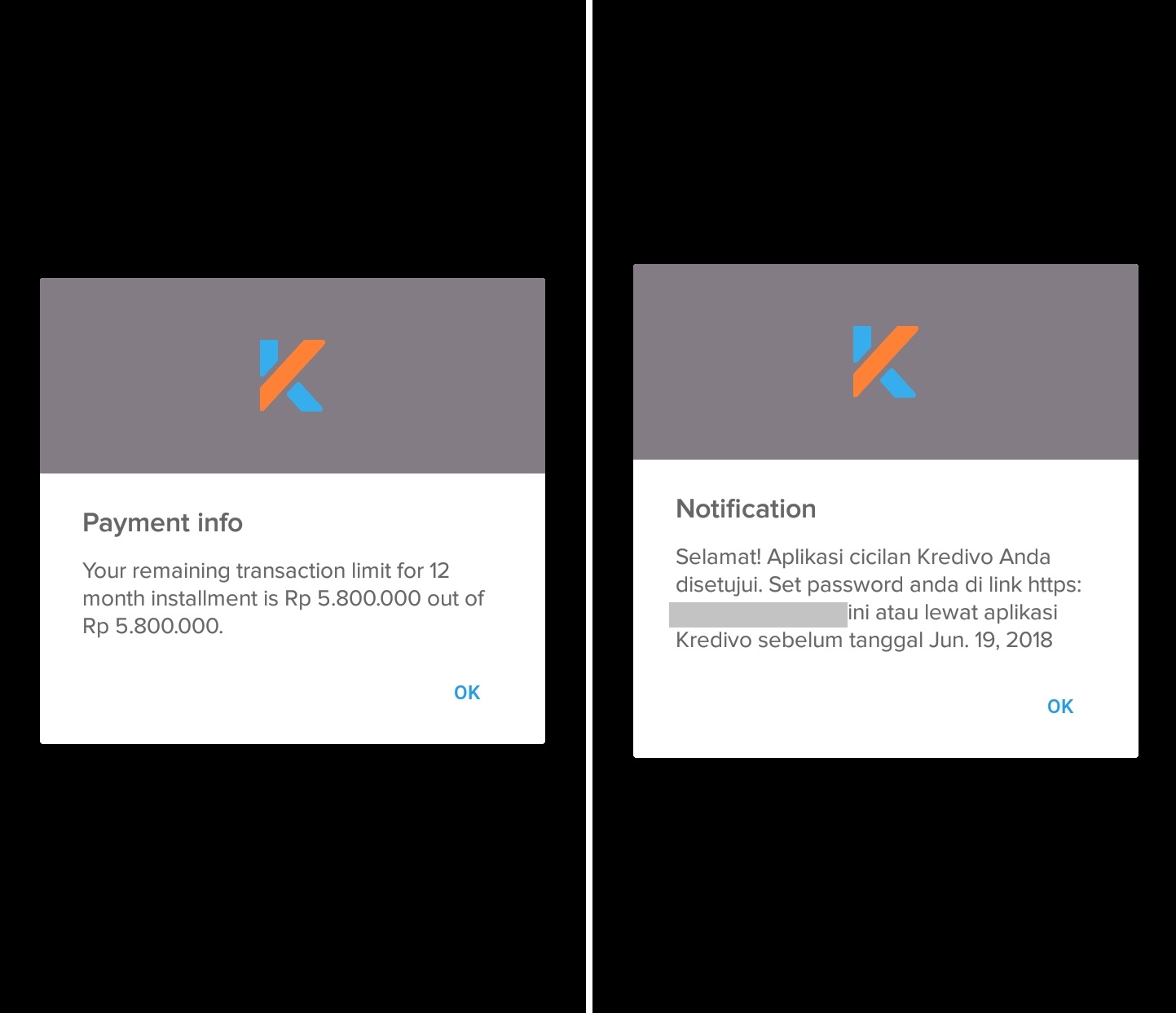 Kredivo merupakan aplikasi kredit tanpa kartu dengan proses pendaftaran hanya 1 menit dan proses persetujuan hanya memakan waktu kurang dari 1 jam. Kredivo berkerja sama dengan 150+ merchant online seperti Tokopedia, Shopee, Bukalapak, Sociolla, Blibli, JD.ID, Lazada, VIP Plaza, Berrybenka, Kaskus, RedDoorz, dan masih banyak yang lainnya dan kamu dapat menggunakannya di toko online tersebut. Kamu juga bisa membeli pulsa/paket data & membayar tagihanmu langsung dari aplikasi. Proses pembelanjaan di merchant dilakukan hanya dengan 2 klik saja.