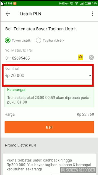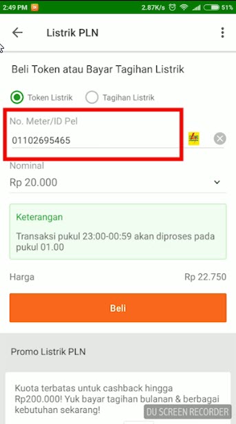 8. Pastikan nomor meteran listrik sudah benar, jika sudah Tap/Pilih Lanjut.