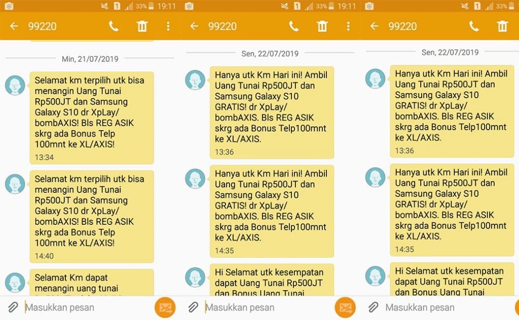Dalam program berhadiah Axis kita biasanya akan mendapatkan SMS notifikasi yang menyatakan bahwa kita bisa memenangkan hadiah jutaan rupiah dan juga handphone secara gratis. Kita akan secara otomatis terdaftar di program berhadiah gratis meskipun kita tidak pernah mendaftar. Hal ini biasa terjadi saat provider mengadakan promosi gratis bagi para penggunanya. SMS ini akan selalu masuk jika kita tidak melakukan apapun. Pada artikel kali ini, penulis akan membagikan tutorial cara untuk berhenti mendapatkan notifikasi hadiah dari Axis/XL.