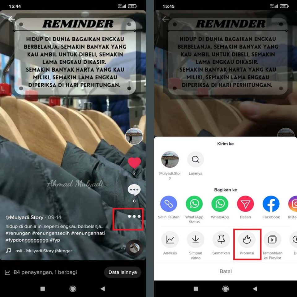2. Carilah produk iklan kamu yang ingin untuk dijual di aplikasi Tiktok, jika sudah ditentukan maka silahkan kamu pilih titik tiga yang ada dibawah.